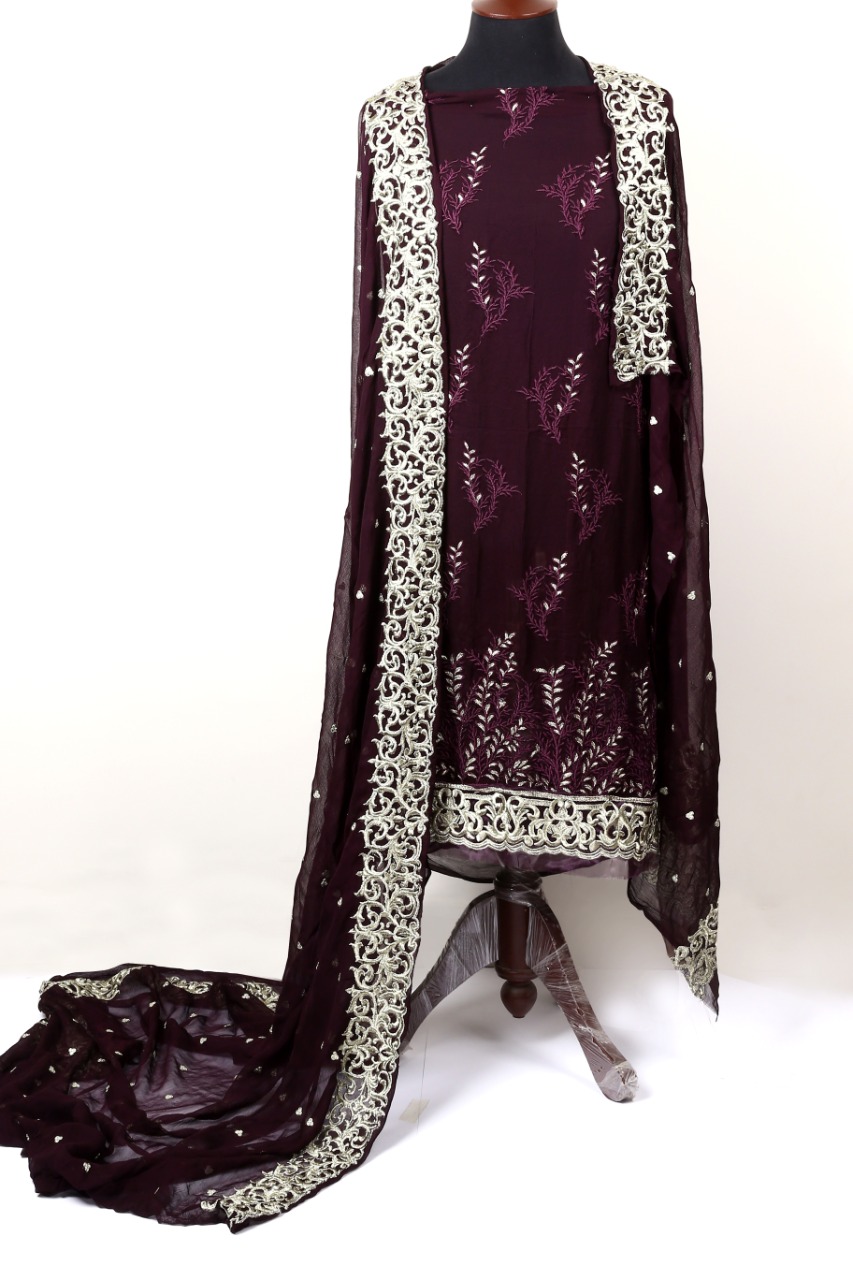 This shiffon embroidery traditional dress have kameez and dupatta with full of embroidery