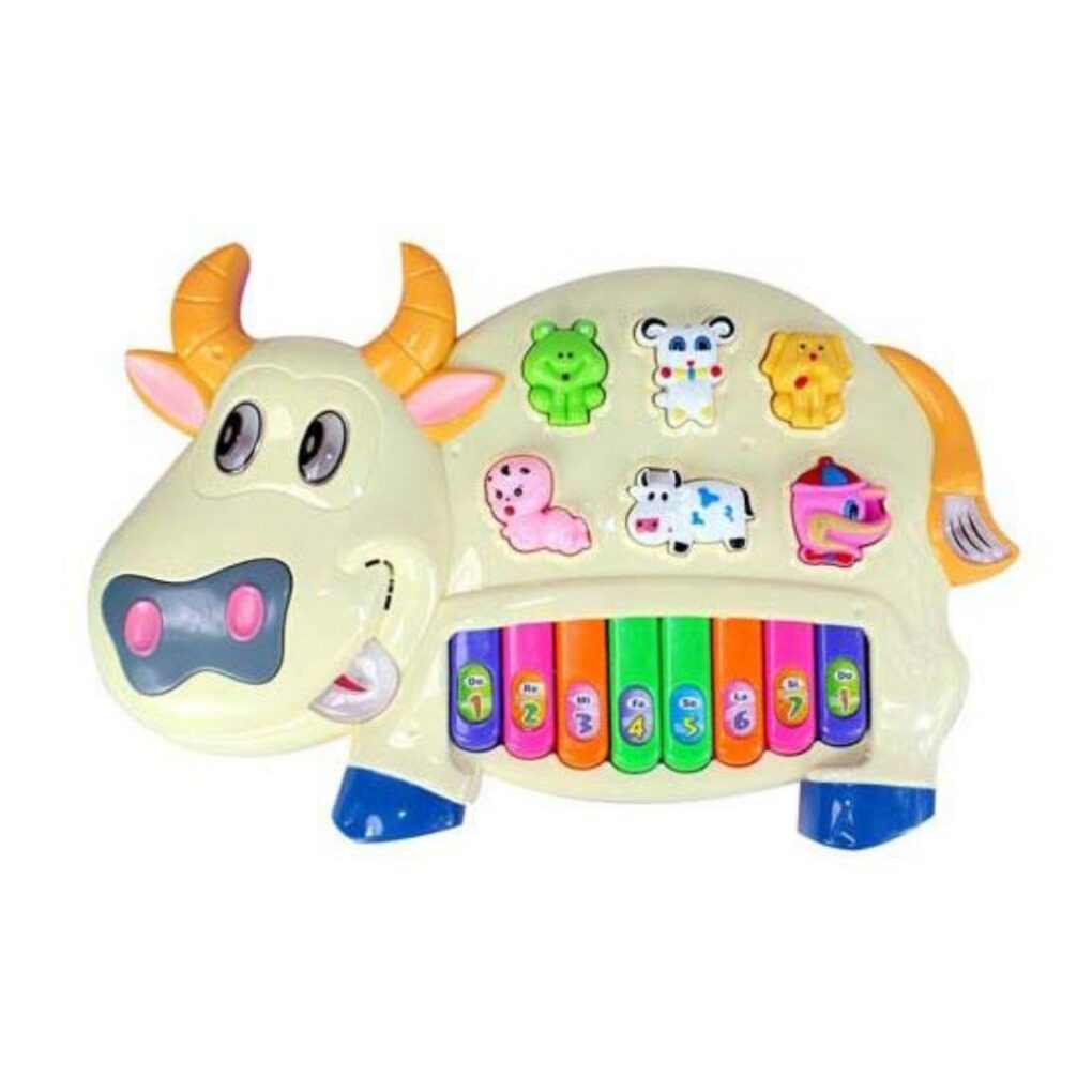 This multicolored attractive Musical Cow Piano from MyPlanet has music and light functions. It Plays Different Music and Rhymes. Press Piano Keys For Different Nodes And Sound. It also plays the animal sound when the child presses the particular animal button. Press Characters On The Board, It Plays Animal Sounds. (Battery Operated) Different animal sounds …